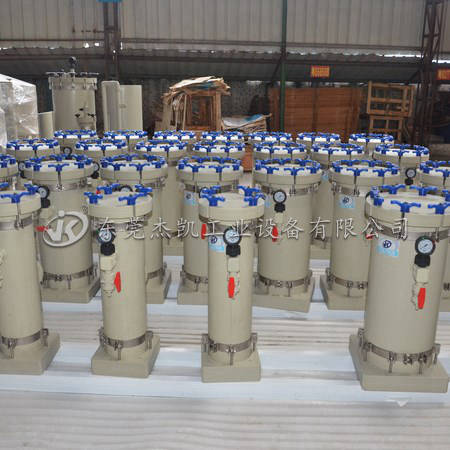 2. 化學(xué)藥液過(guò)濾機(jī)入口配管最前端必須加裝底閥或逆止閥及過(guò)濾網(wǎng),位置不能靠近空氣攪拌管,避免吸入空氣,并盡