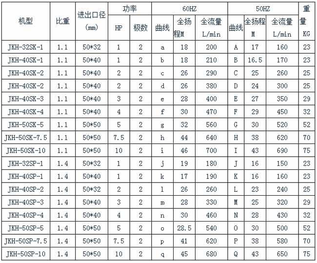 JKH高壓耐酸堿立式泵規(guī)格表
