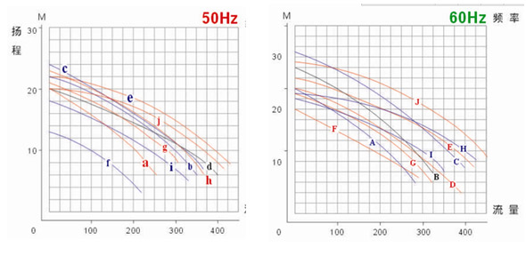 JKT 耐酸堿液下泵性能曲線圖