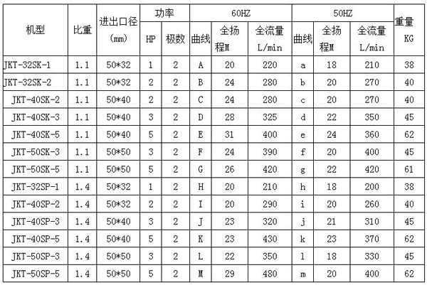 JKT 耐酸堿液下泵規(guī)格表